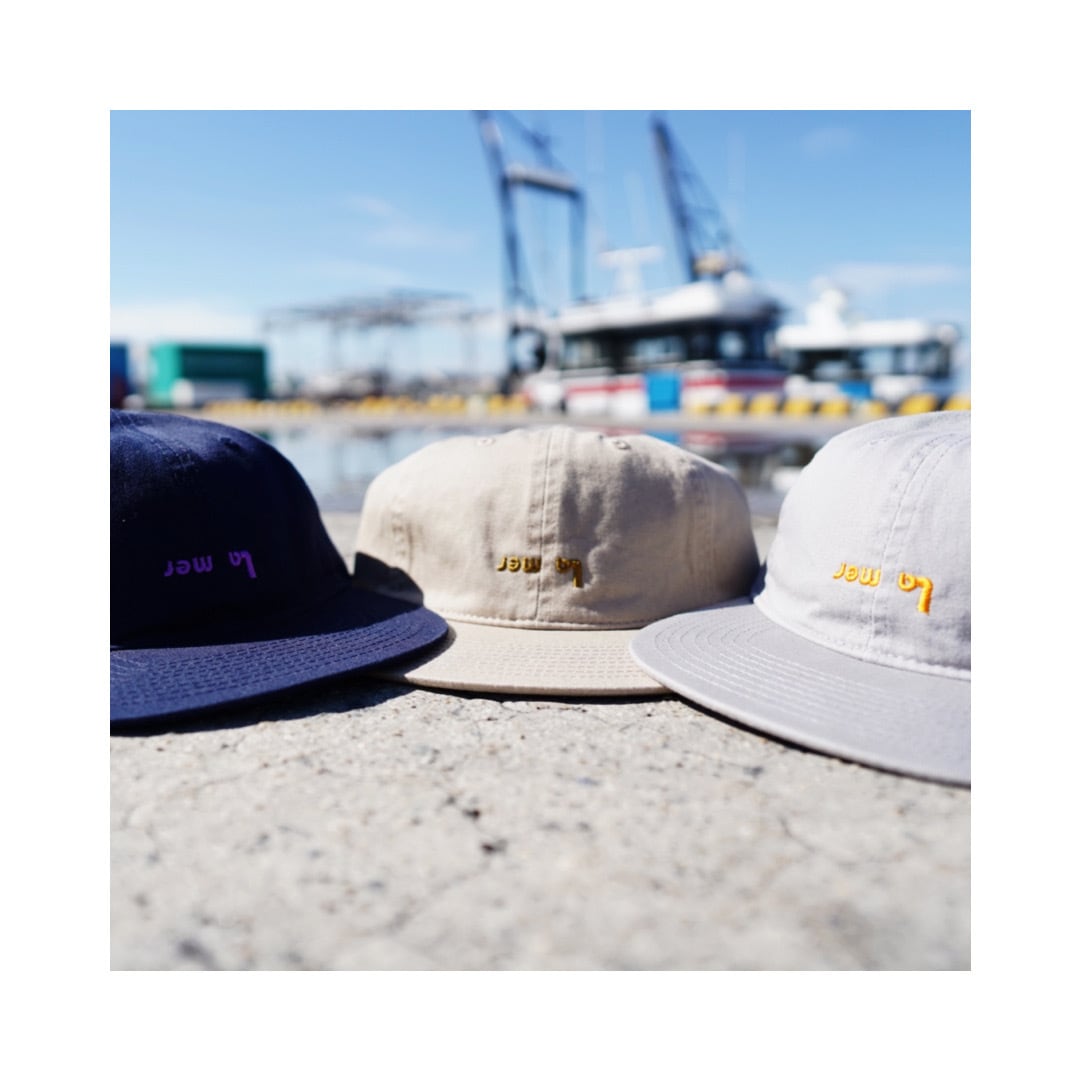 ラメールのロゴを逆に刺繍したナイロンキャップになります。サイズはフリーで、後ろでサイズ調節可能です!