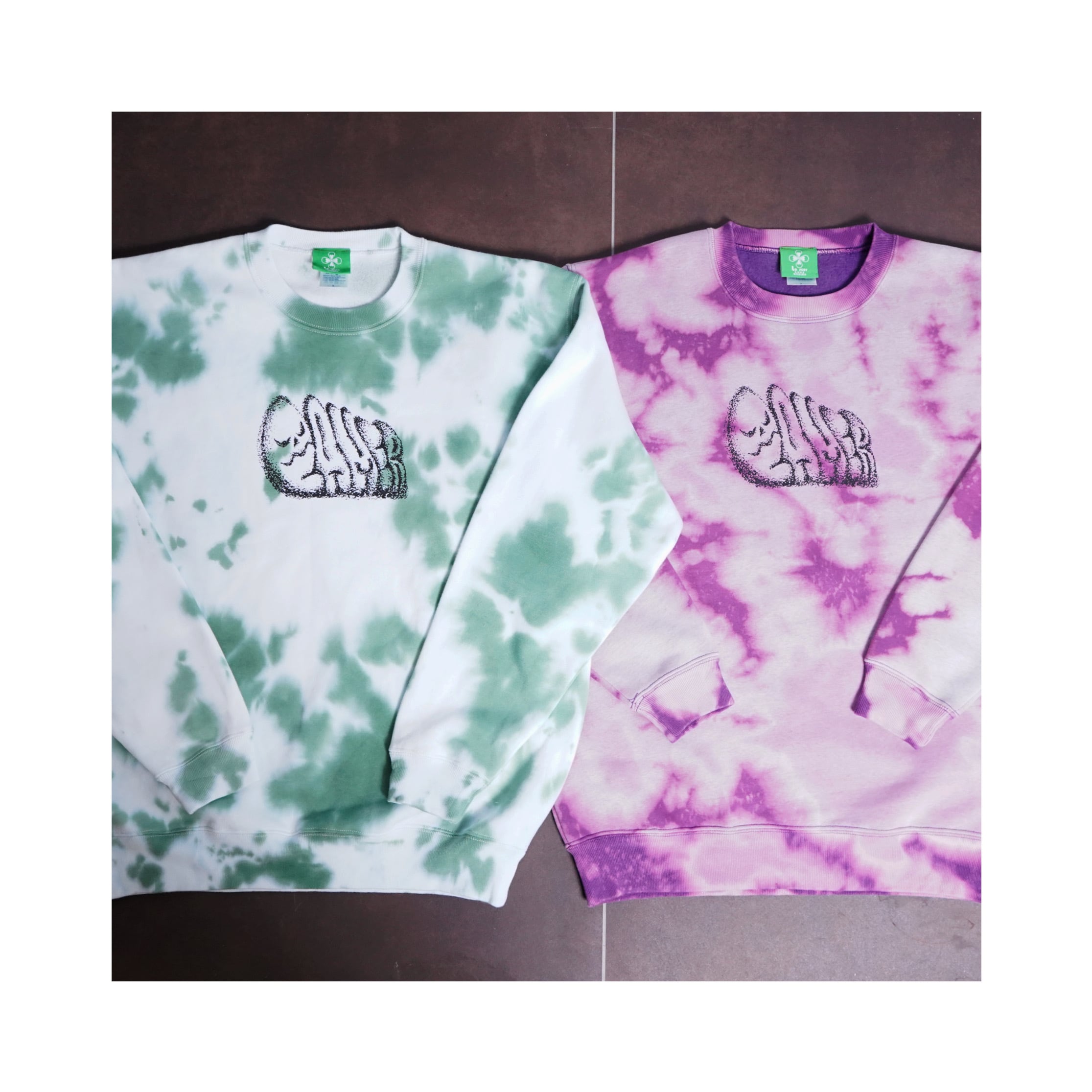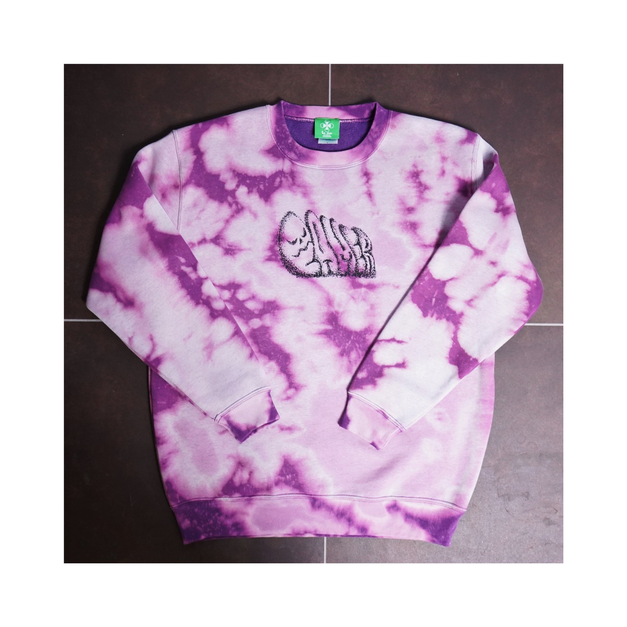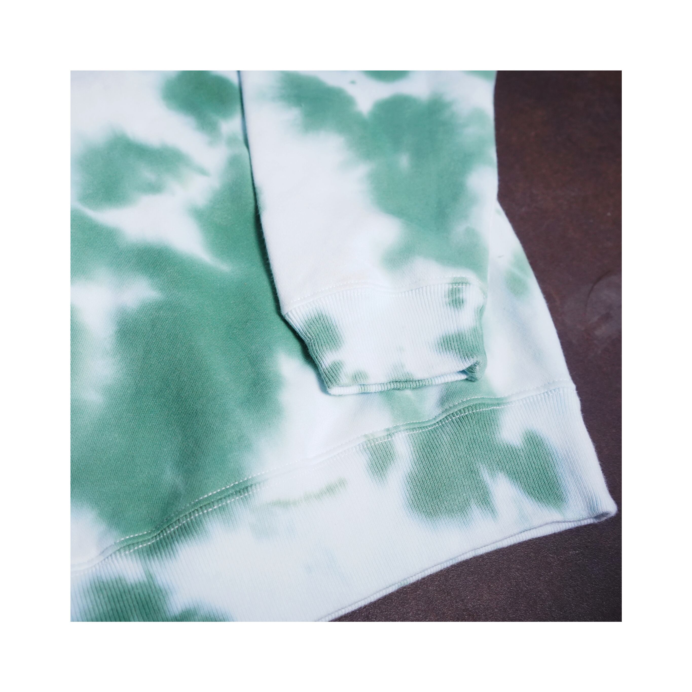 それぞれ、脱色の抜け方や染めの入り方が違うので世界で1枚だけのスウェットになります。