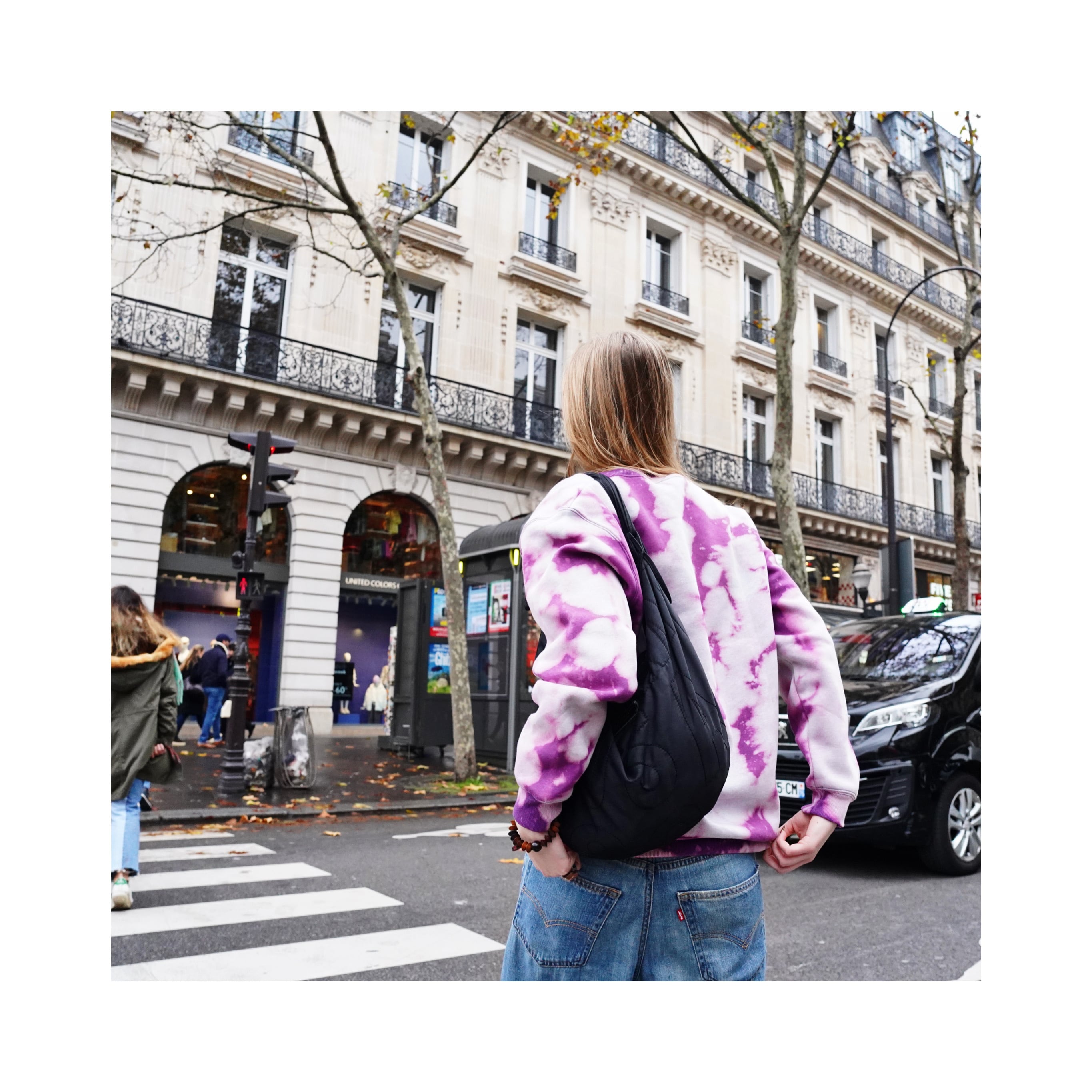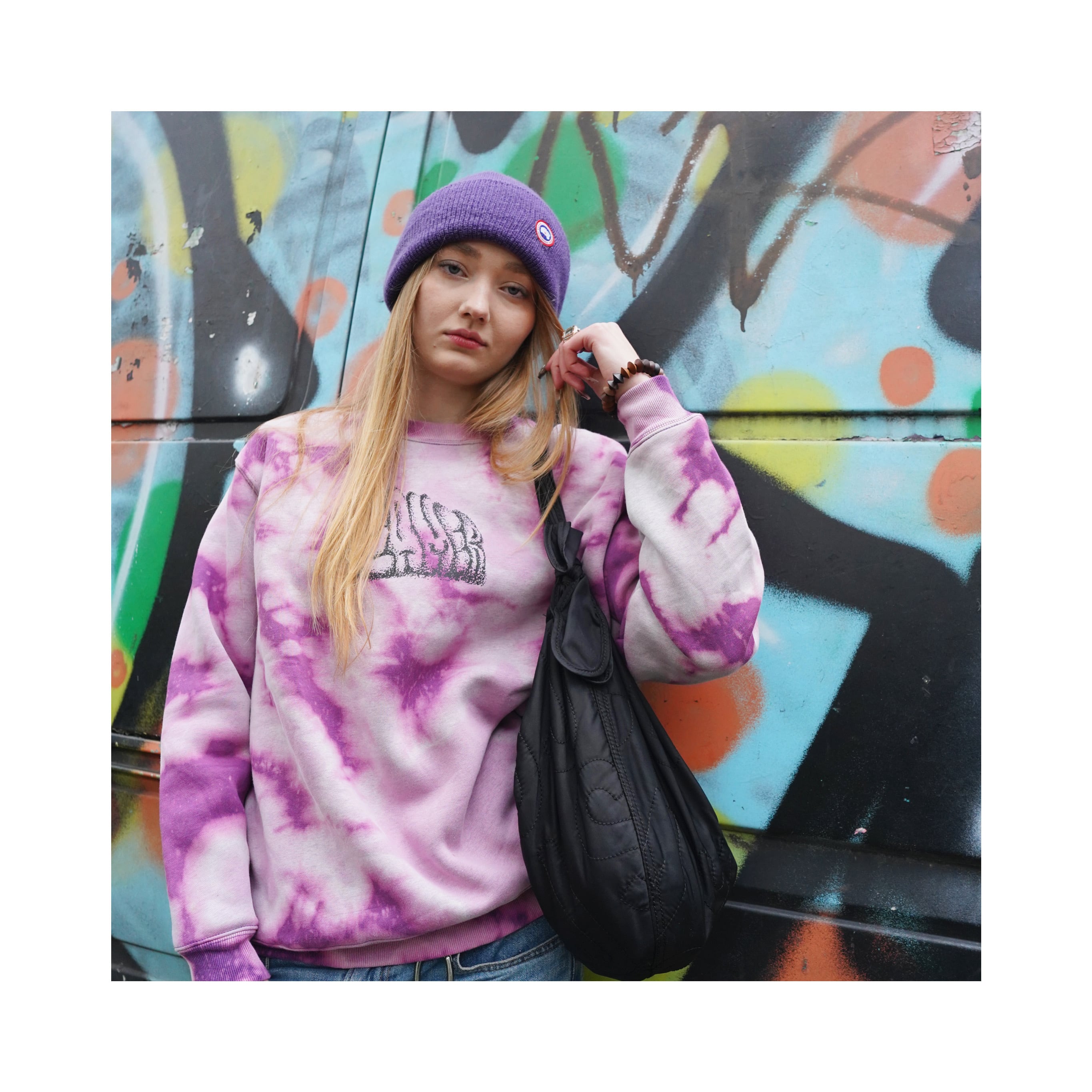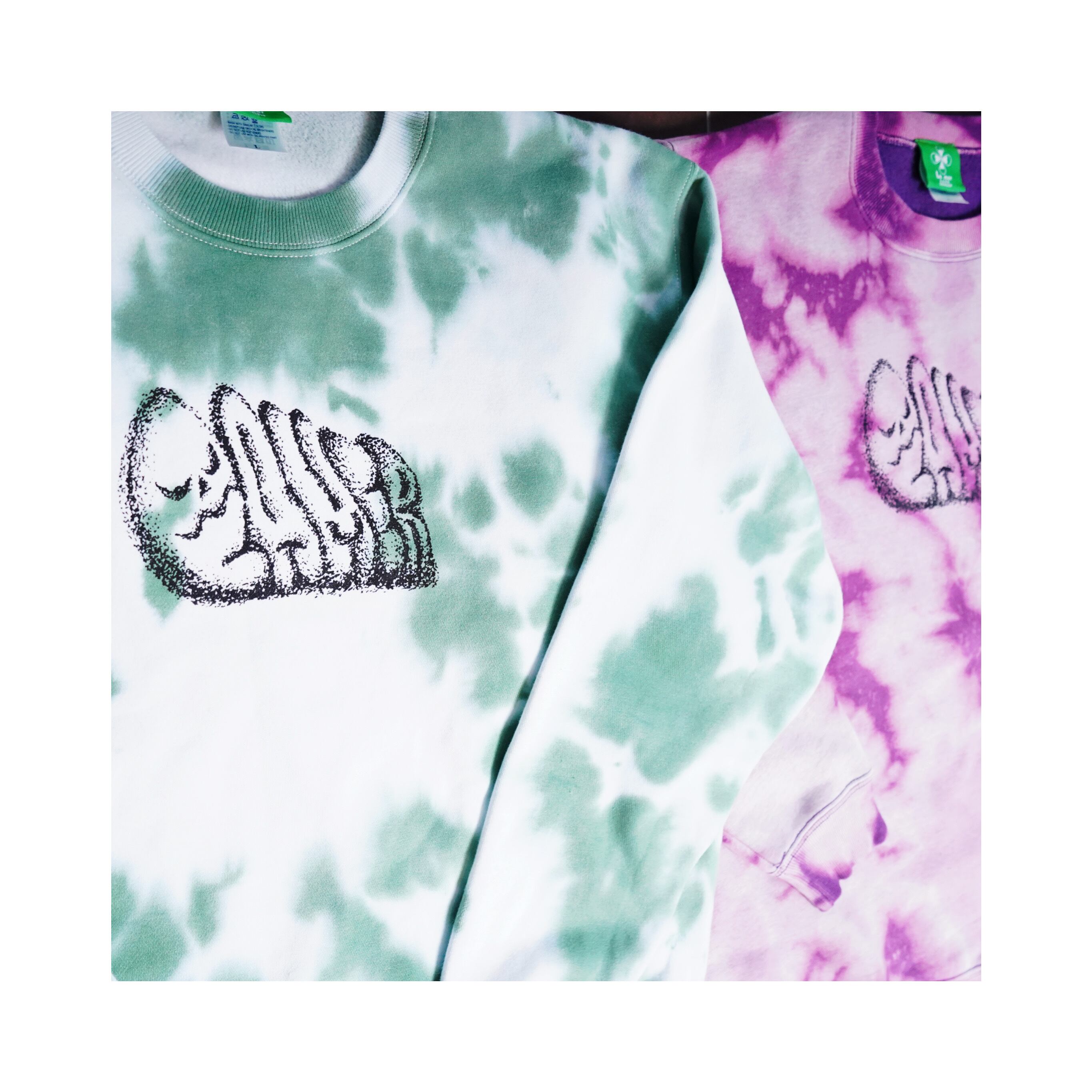 それぞれ、脱色の抜け方や染めの入り方が違うので世界で1枚だけのスウェットになります。
