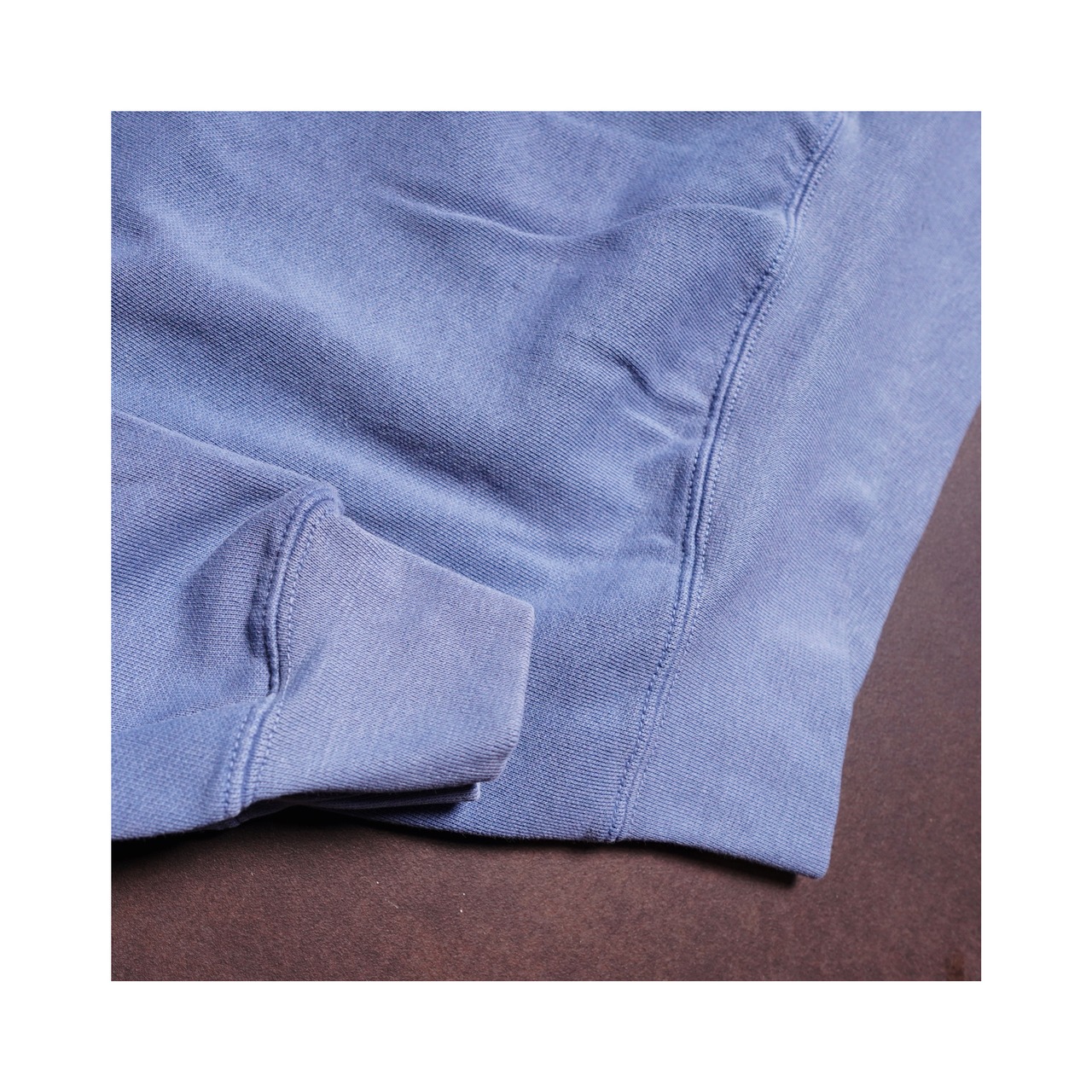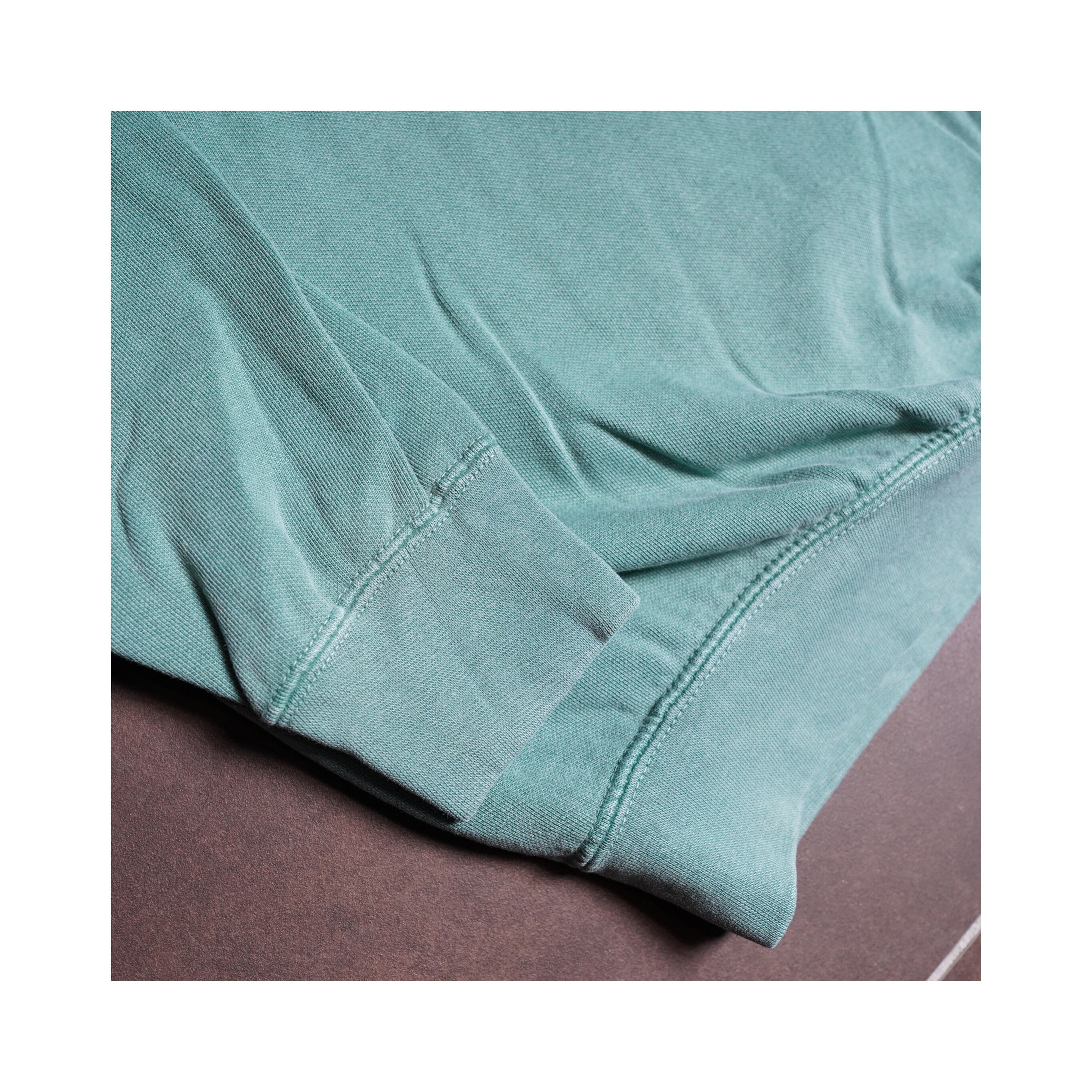 リブ付き袖口、ネック、裾はダブルステッチ。