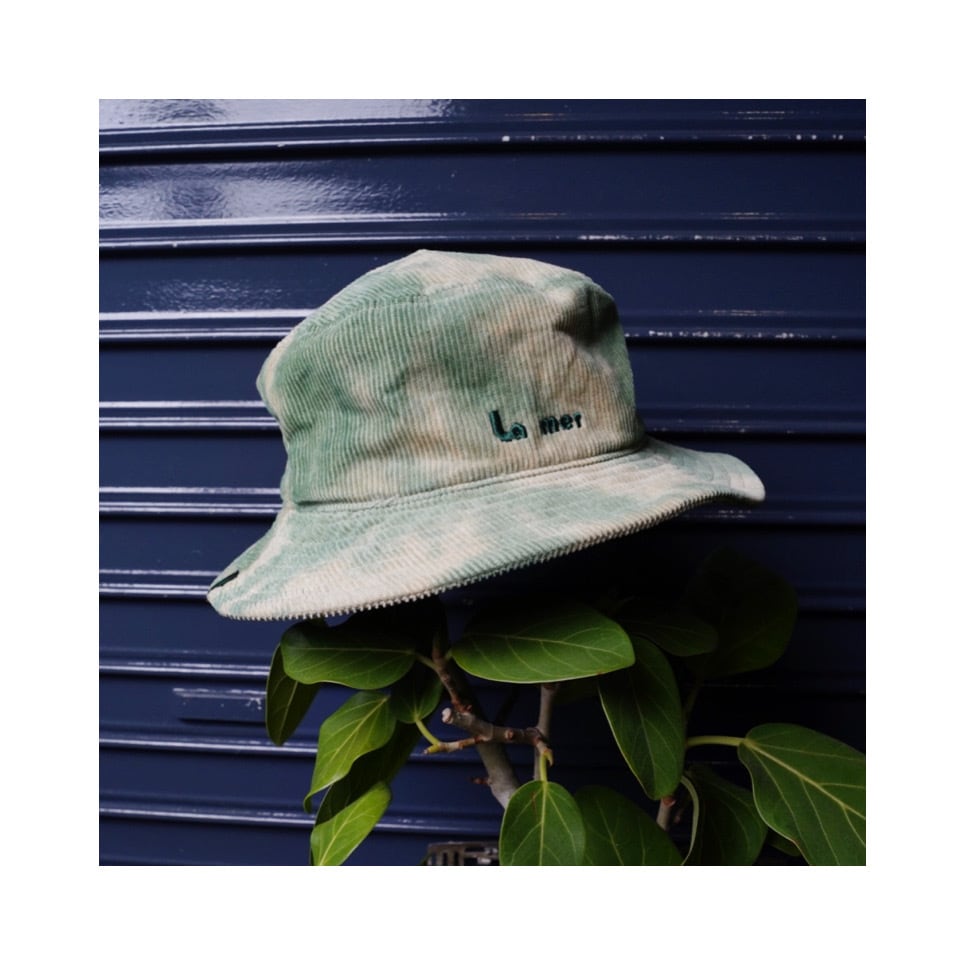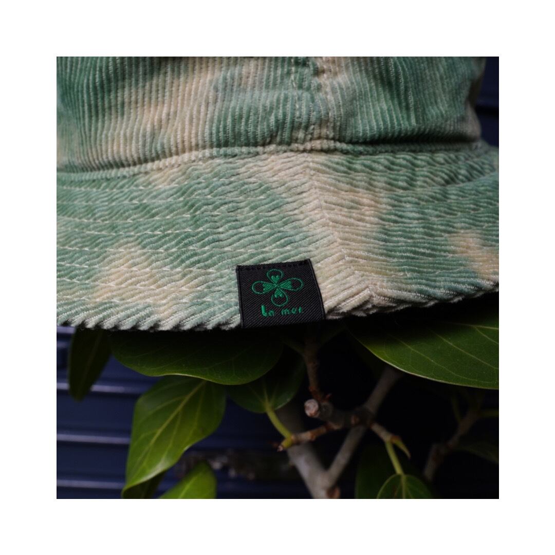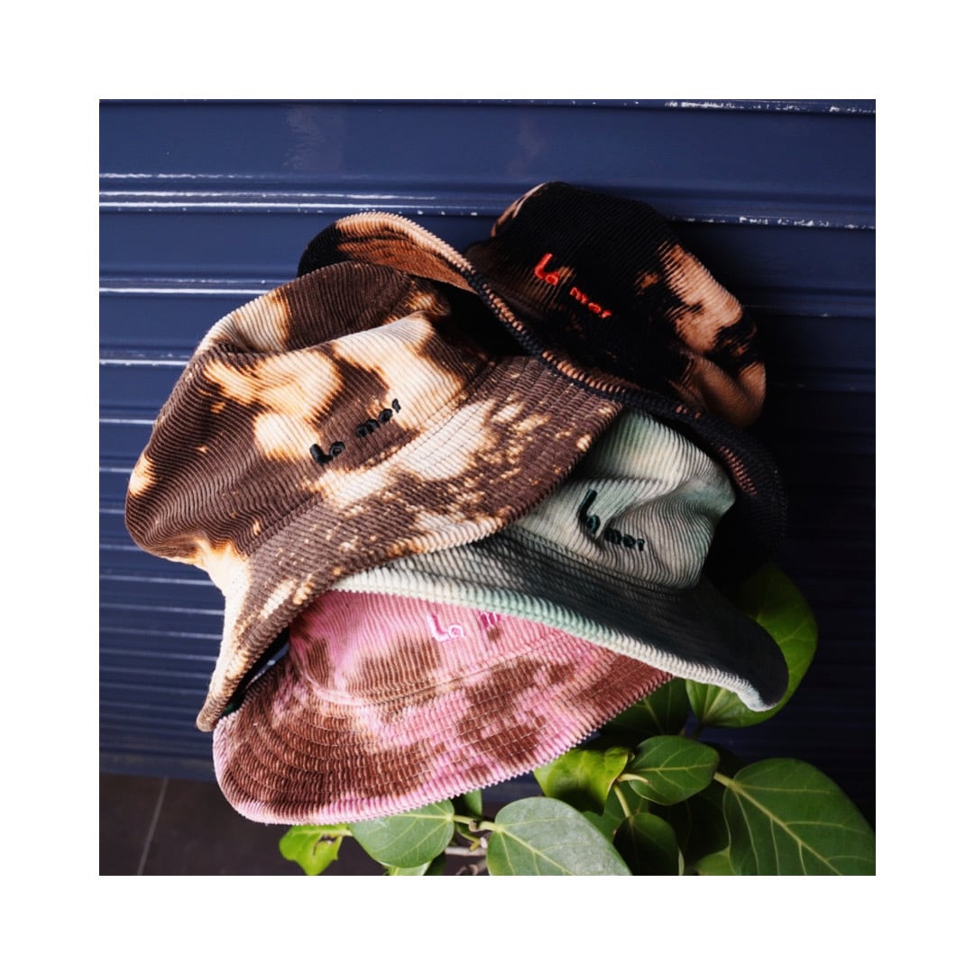 コーデュロイの生地に脱色加工、タイダイ染めした1つ1つ制作し、同じものができない世界に1つの帽子が完成しました